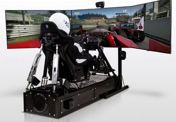 If you’ve ever had the opportunity to play a driving game on a Xbox, PS3 or even a computer with a proper steering wheel, shifter and pedals, you know how much better the experience is than if you’re just using the standard controller. Now imagine a set-up where you’re surrounded by three big screen TV’s and in a proper racing seat that provides physical reactions to your input as a car would in the real world. It’s so realistic that you actually emerge from the cockpit feeling tired from the g-loads.