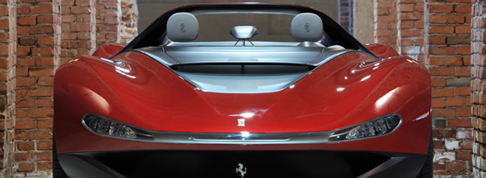“To enhance the formal purity of the Pininfarina style criterion, all the technical parts of the Sergio (handles, fins, air intake holes) are concentrated in dark parts of the body, leaving the red painted parts free.”