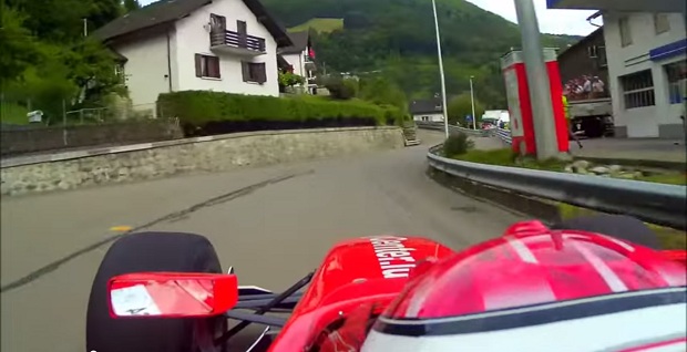Bingeing on onboard videos from Baltimore and the rest of the world’s street courses, I found this and thought it deserved a share. Driving is David Hauser. He’s piloting a Dallara GP2 machine through the streets and up the hill at the Course de côte de St. Ursanne. It’s a hillclimb event, but there’s much more to this event. It has elements of the race in Macau and Baltimore with an open wheel car attacking city streets. The onboard’s perspective does a fantastic job of showing how close the car is to houses, trees, and Armco. A little rally too with the fast sweepers and slow hairpins and forest scenery.