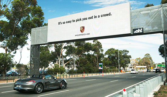 Designed by Australian company oOh!, a series of cameras up the road view every car about to pass under the billboard. By using vehicle recognition, it determines if you’re driving a Porsche. Then, at the appropriate time it pops up an image saying, “It’s so easy to pick you out in a crowd.”