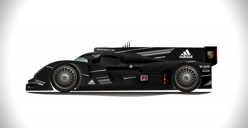 firm imagines the German sports-apparel company, ADIDAS, as the title sponsor. Black primary color and three white stripes certainly make the car look fast, but endurance racing teams and drivers have discouraged a black primary color for visibility reasons.