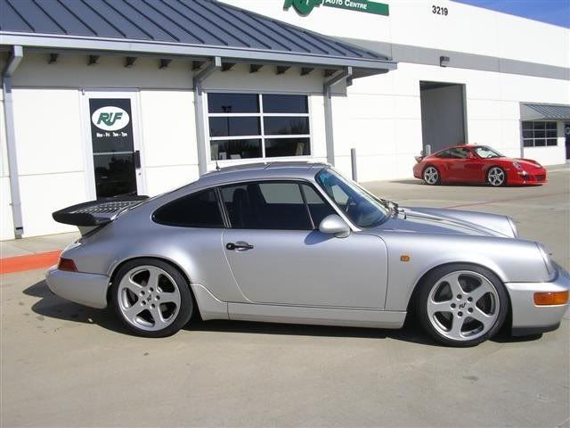 Very Rare RCT EVO conversion. Based on a 1989 964 C4 (no steering wheel airbag required), RCT EVO engine conversion (single turbo, 420hp), RUF 6 speed transmission conversion, RUF coil-over suspension, RUF strut tower brace, RUF brake upgrade, RUF 18" wheels, RUF lip spoiler, RUF steering wheel, RUF aluminum pedals, RUF shift ****, Lightweight door panels, rear seat backs and rear shelf removed, Sparco seats (or stock seats), boost gauge -from ruf's website.