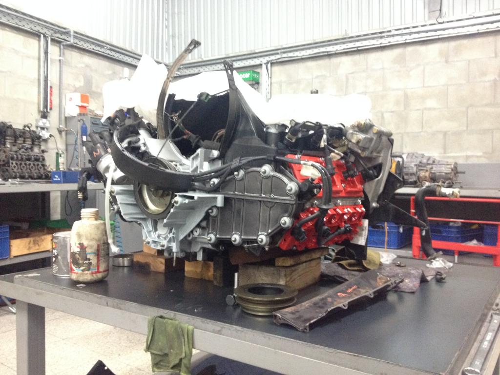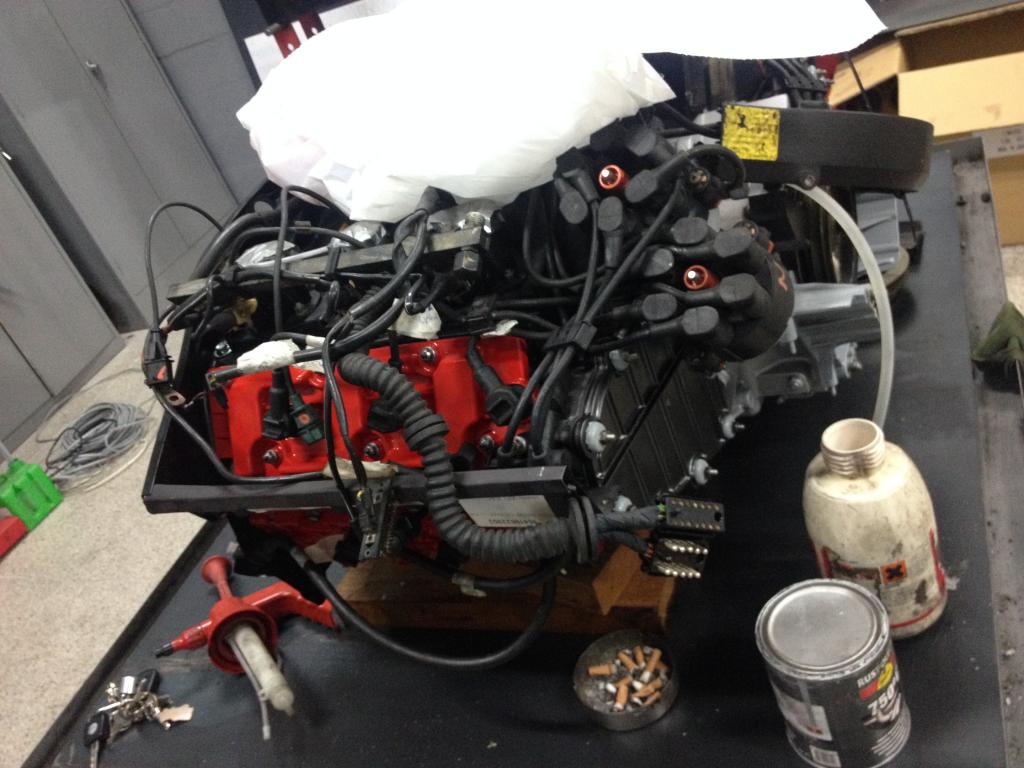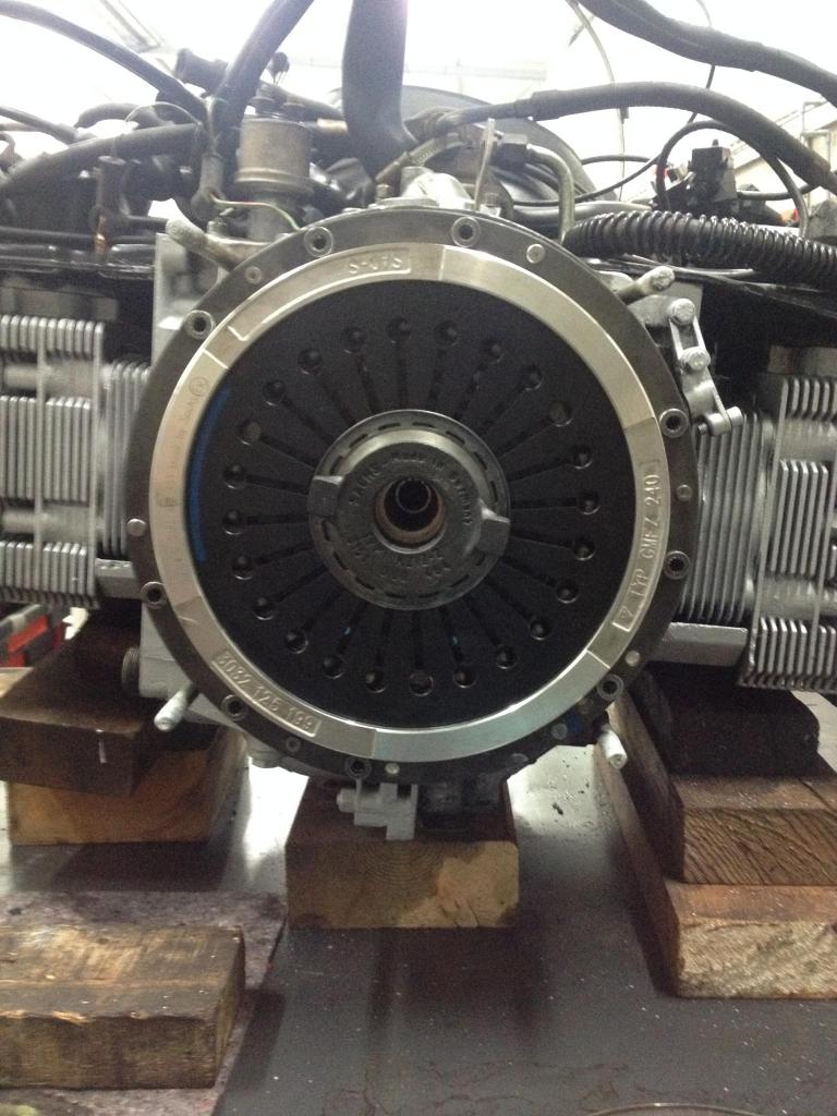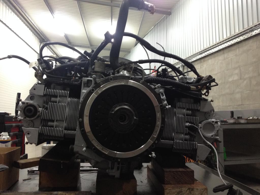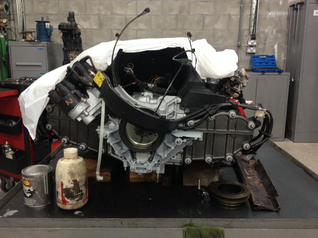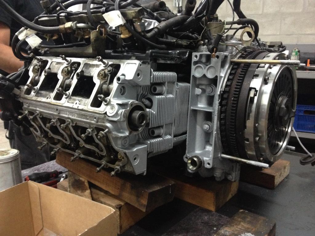 engine ready for the gearbox to be fitted