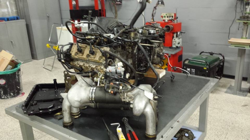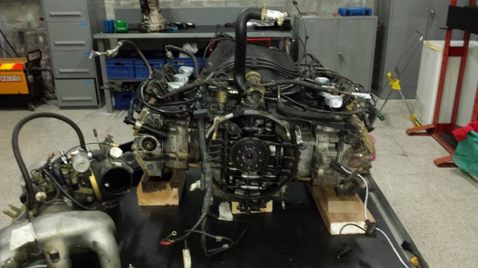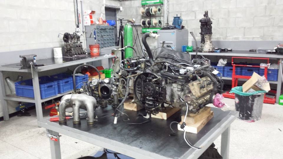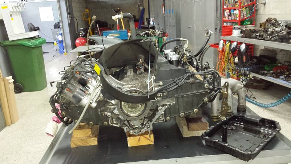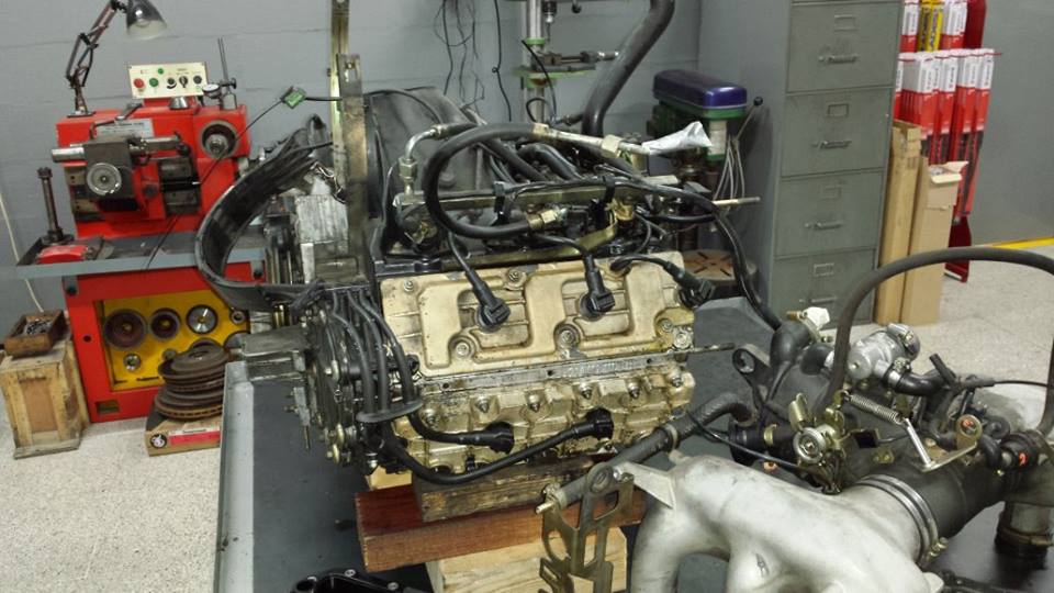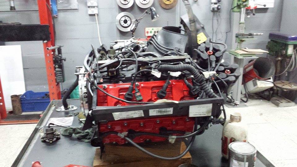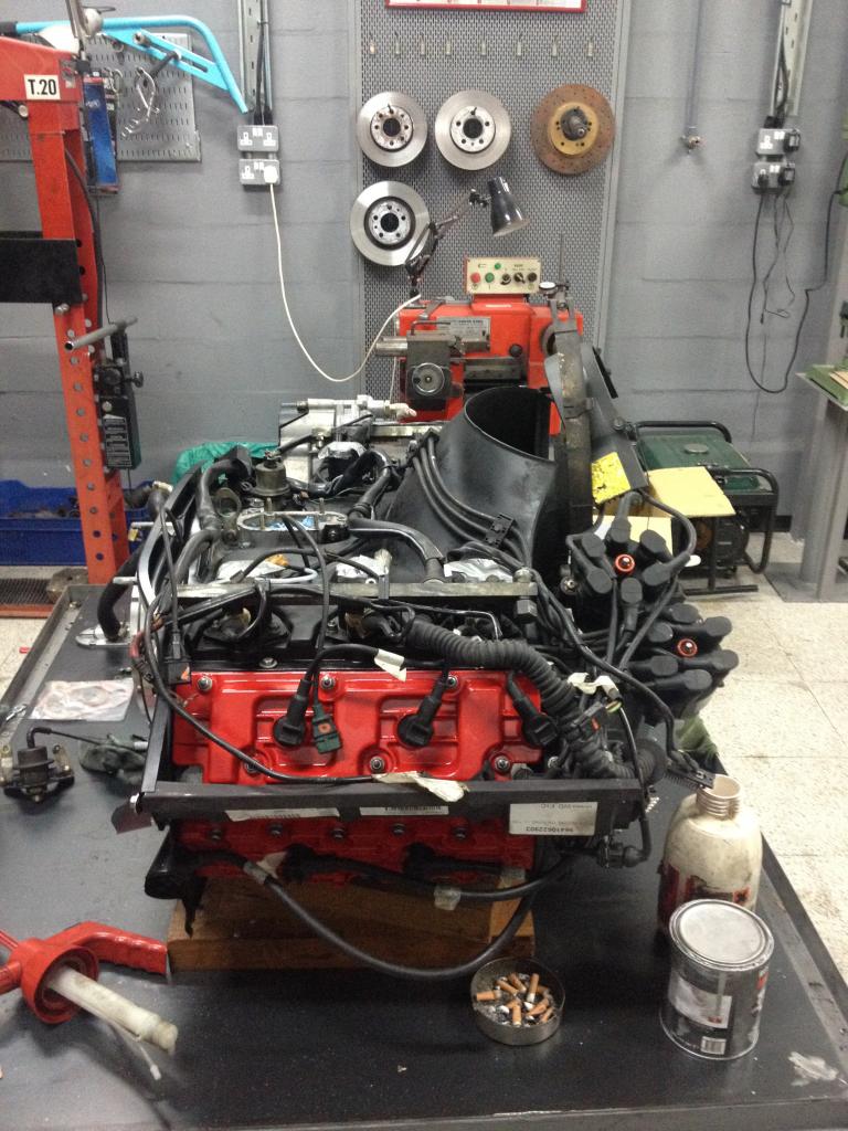 engine ready for the gearbox to be fitted