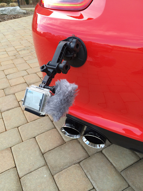 In order to get a better sound quality, I mounted my GoPro on the rear bumper and used an external microphone: