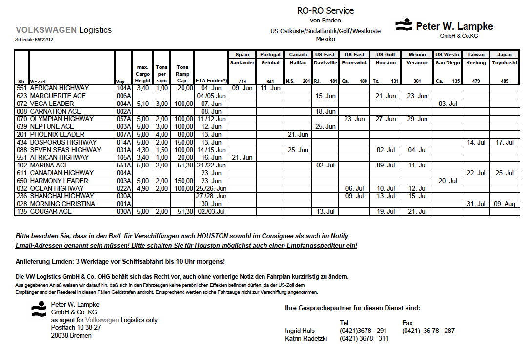 To clarify, i was told that the port is Bermerhaven. Is this the same as Emden?