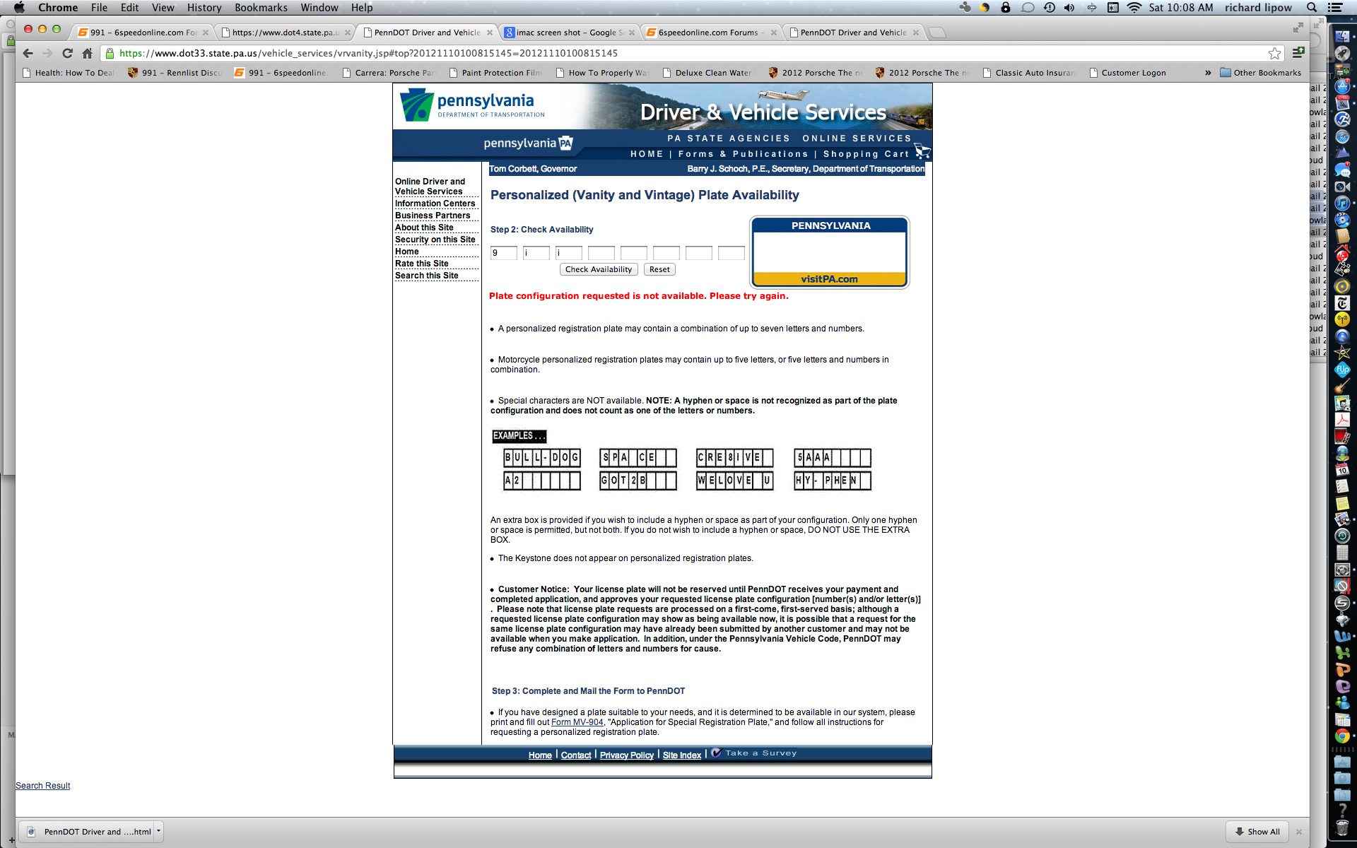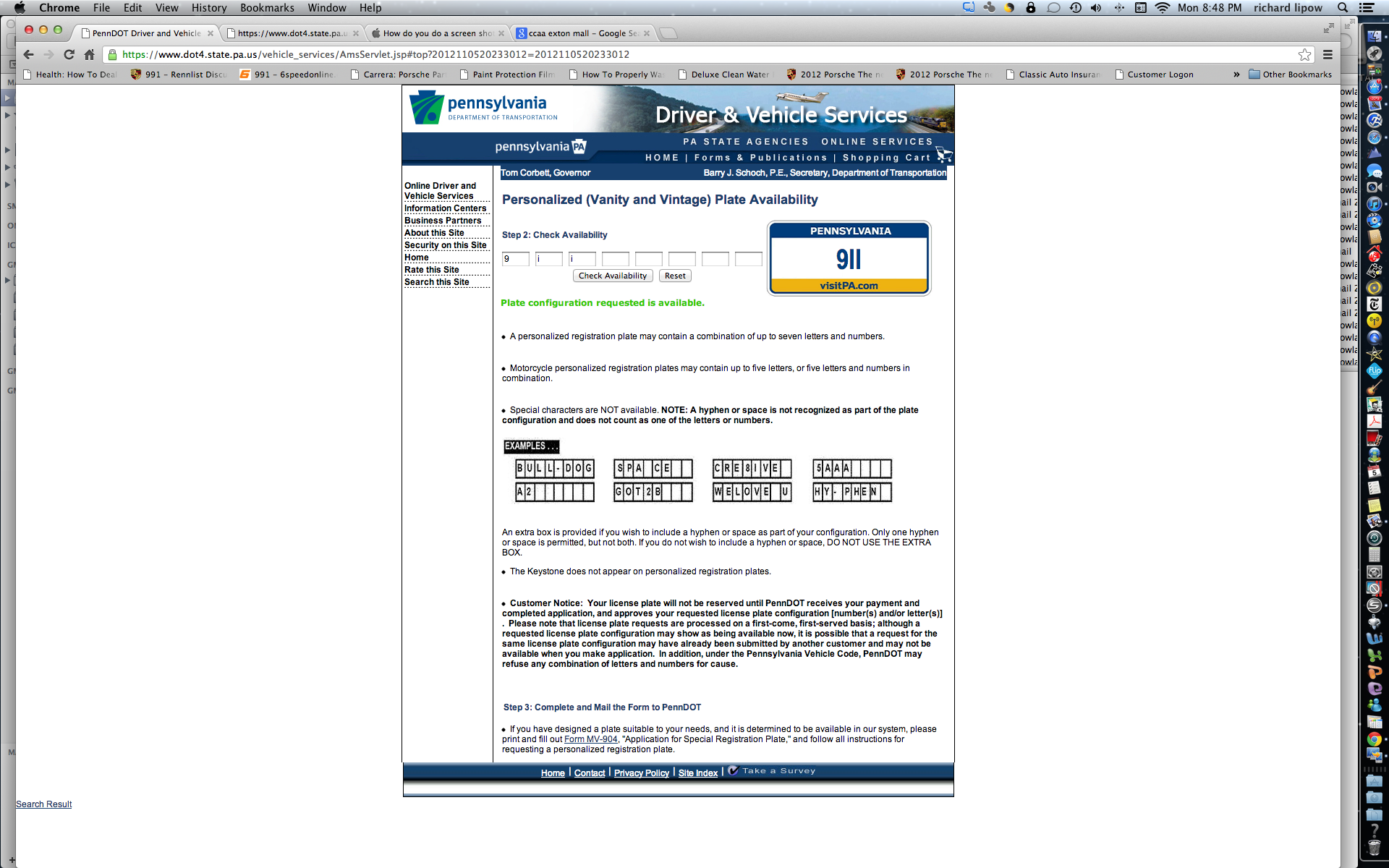 I sent in the form with "9ii" with my $20 I suppose that PENNDOT received my application site now says that it's unavailable.