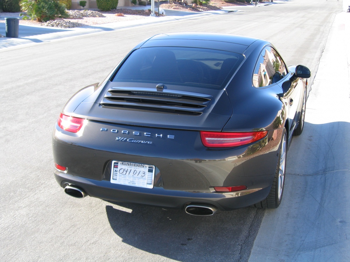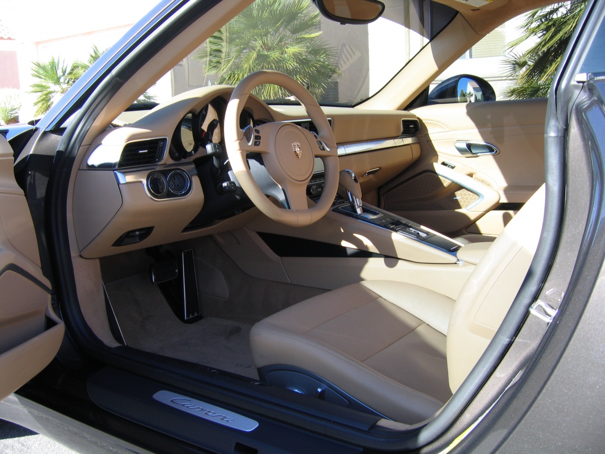 So I figured that a happy medium would be “just” the Carrera Coupe, with only a few options. So I spec’d out a Carrera Coupe for about $100K, and went to the dealer for information about ordering one. As it turned out, they had just gotten in a “previously-enjoyed” 2012 Carrera (991). Anthracite Brown Metallic /Luxor Beige, PDK, Bose, 20” wheels, sunroof, and a few other options. It listed in May, 2012, for about $99,500.