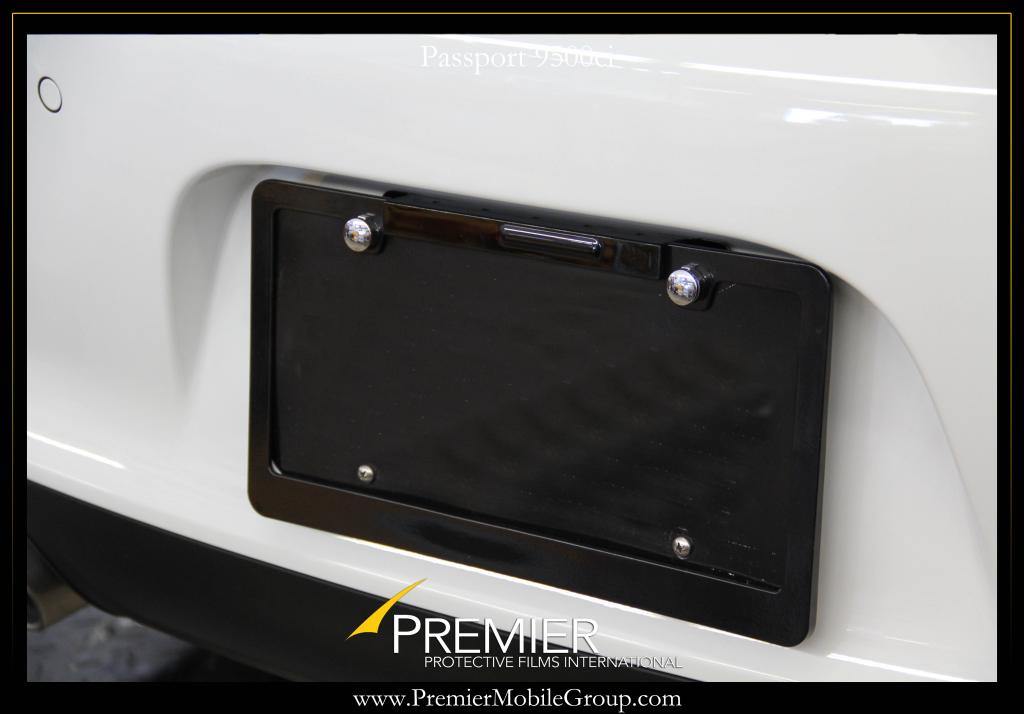 First, we created a custom display in the center armrest area and wrapped it with matching leather. 2nd, we made a custom frame for the rear jammer so it is integrated into the rear plate. Most 9500Ci installs are just mounted on top of the plate frame, which is quite visible since it looks like a 2" black box sticking out.