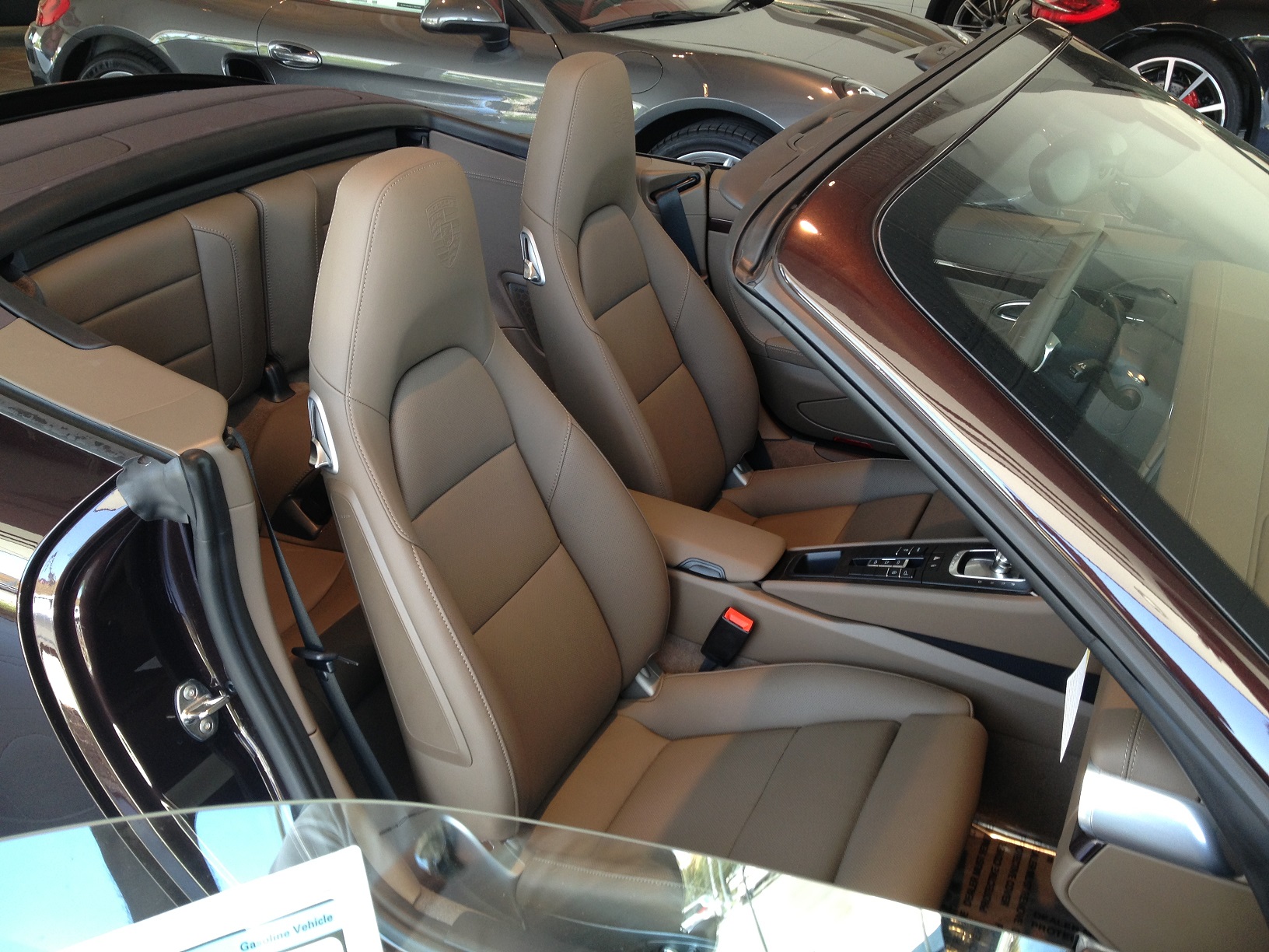 1) When I first test drove and was just acclimating myself I saw a 991 at the dealer with "umber" full leather. And I thought it was beautiful.. But it doesn't seem to show up in the configurator.. (I see it for the cayannes though). Not sure if it was a special color or maybe it was available on 991's and they yanked it for some reason..