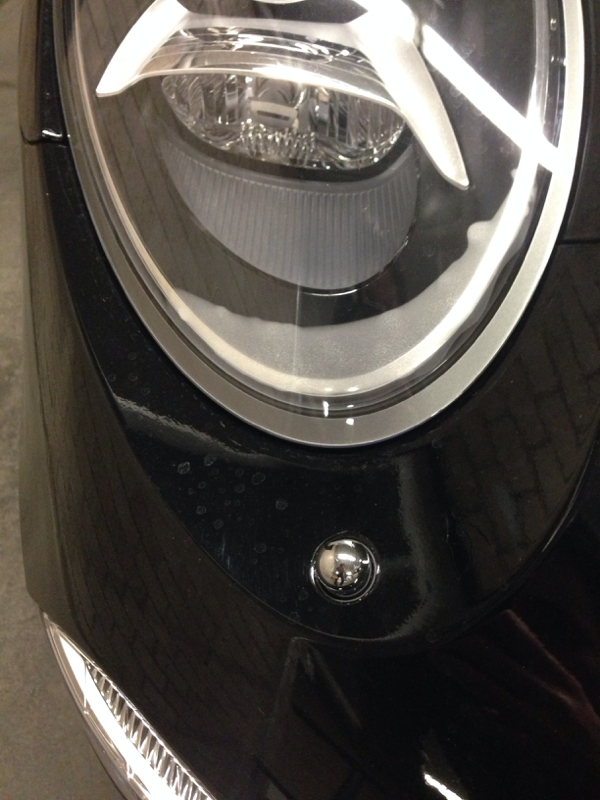 The rear taillights do it as well when we wash 991s....I'm assuming this is part of the design. Not sure of the purpose