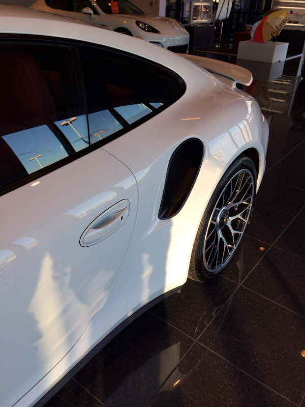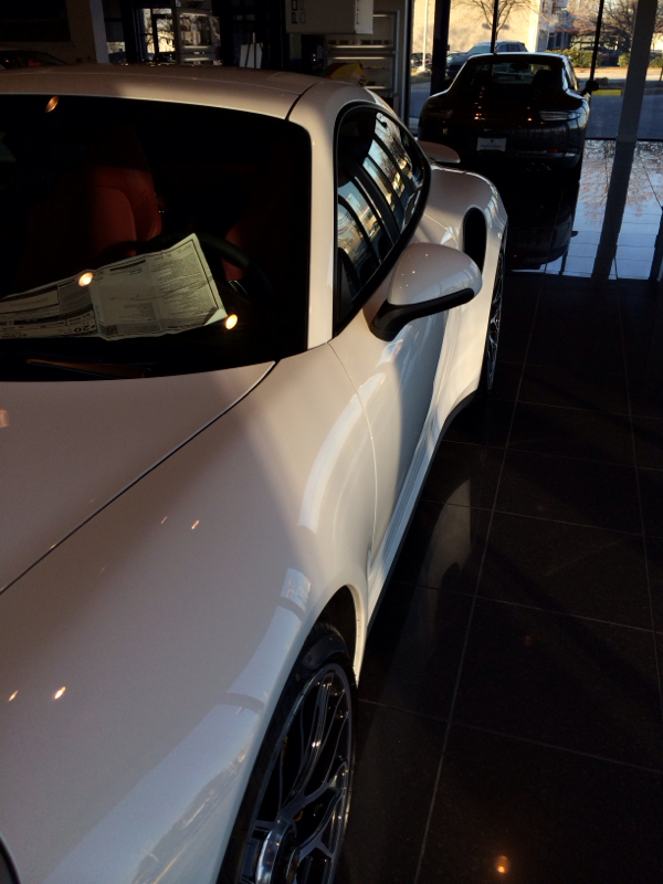 Alas, my wife said "uggh. It's white". I then explained that Porsche will paint a car in whatever color she would prefer. I do not believe that this gorgeous motor vehicle will be gracing my garage. And yes, it's even better up close than in photos.