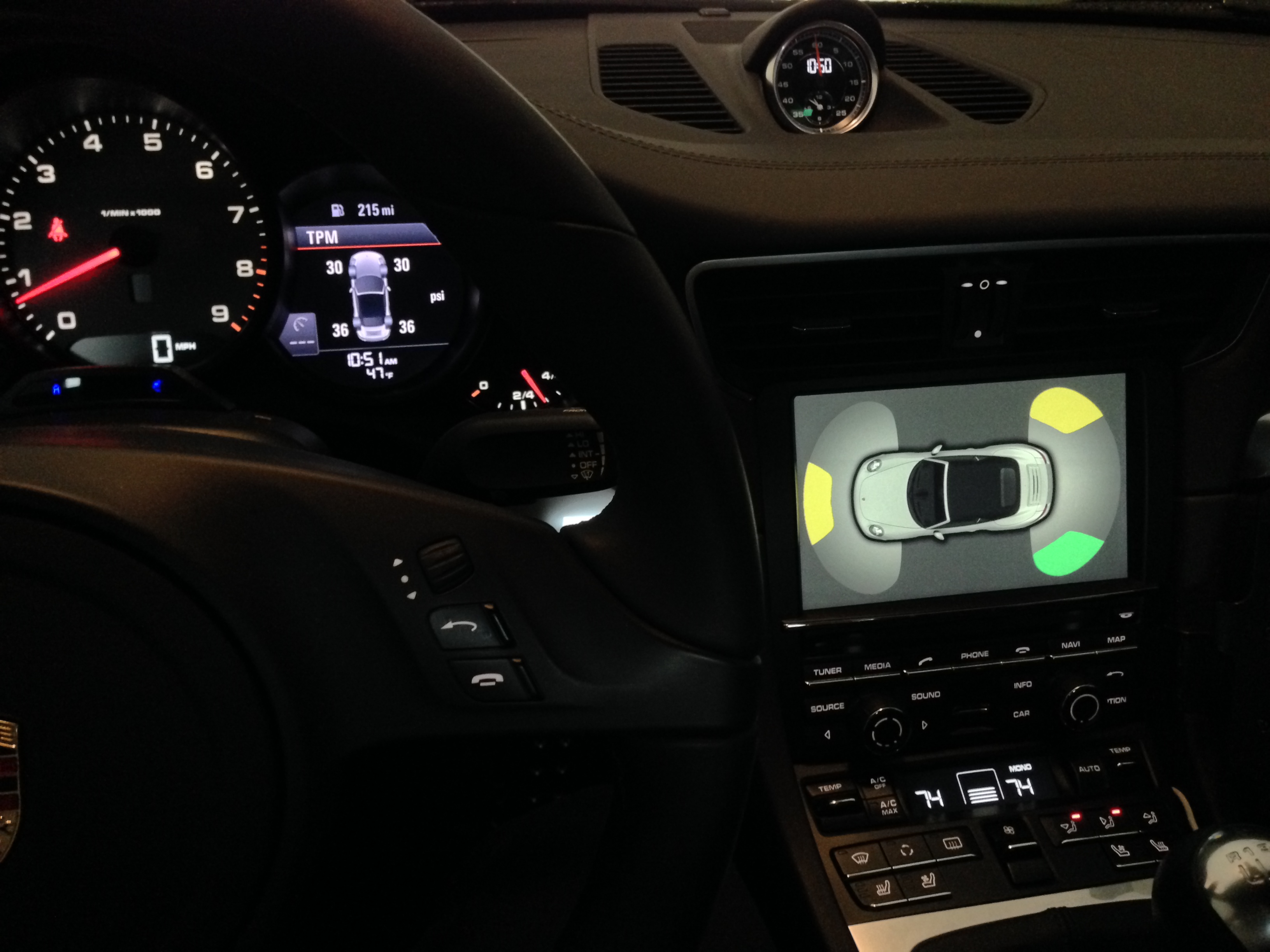 Problem is the system is too sensitivity and may go on for no reason. After my PCM was replaced for it, the issue remains. Porsche has a Service Advisory about it. The system picks up radio interference and sets it off even when you are not near any objects. At least it is only transient.