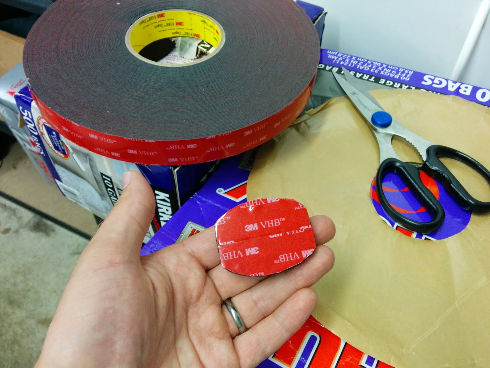 I replaced the white adhesive tape on the mount with black adhesive tape. I ordered 3M 5952 VHB, which is a close cousin to the factory 3M 4991 VHB tape (only available in white and grey). The old mount came off very easy, hair dryer on hot for about 3 minutes and it popped right off. I trimmed the 5952 tape to fit the mount, then stuck it on. I think it looks a lot better, but I might have put it a tad too low... might re-adjust later since it's so easy.
