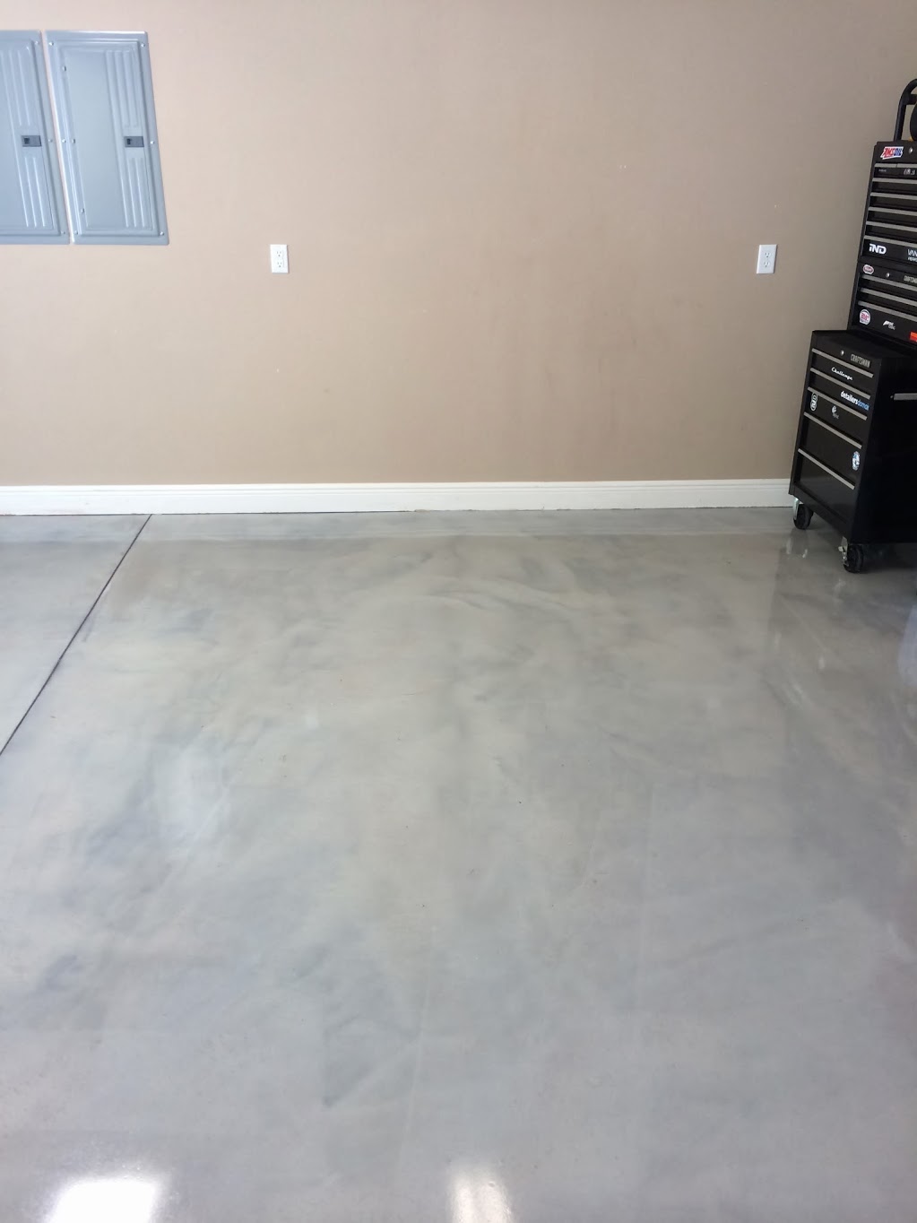 I wanted my floors to look like the ones in Home Depot. I posted on Garage Journal and asked how to get that done. Most everyone suggested I not due polished concrete. The problem with it is that it will still stain. Also, the big box stores have their floors touched up very often to not show wear.