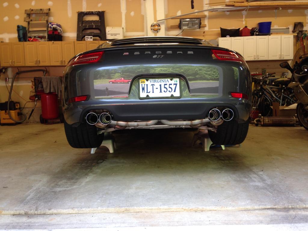 I took the car out for a proper run with the new pipe on it tonight and my initial impressions are confirmed. Its far too loud for me, and thats really disappointing as its a nicely made unit and the tips are so much better looking than stock. Ran the car over to my fellow local PCA member's houses and they also thought it too loud for Fairfax VA suburbia. If my car was a dedicated track car it would be perfect - but I can't have it on as a street car.