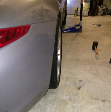 You can see in this pic how the right rear wheel/tire are pushed out to just the very edge of the wheel arch... After driving a week, I haven't noticed any more dirt or other marks on the side of the car than usual, so going 7/15 works in my case.