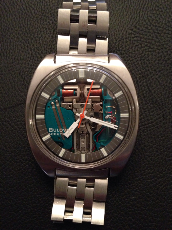 I just picked up this 1970 Accutron Spaceview. Runs on a tuning fork and was on the first few space missions including the moon as a instrument. Made before Quartz watches existed. Hums to F sharp when against the ear.