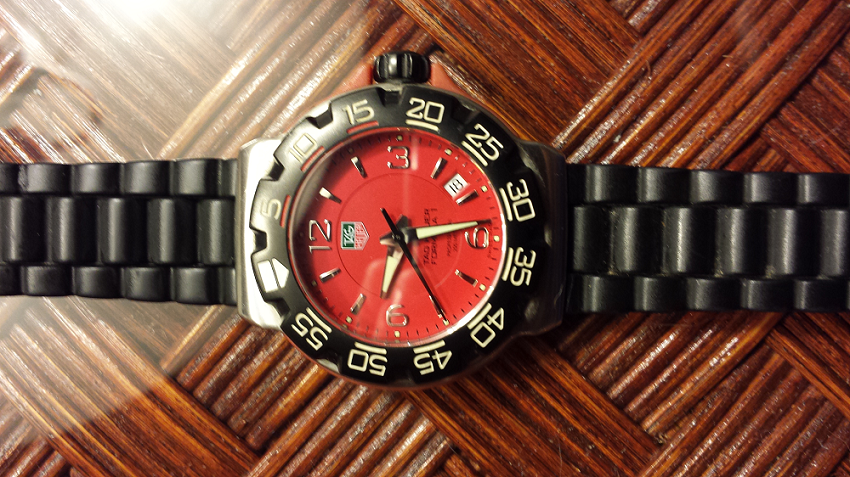 It's got some red and the Porsche Design PVD look in the 70s begat the darkened watch case/bracelet trend that continues to this day , just as the OEM blacking out of chrome in the mid 70s 911s helped lead to that trend in sports cars .