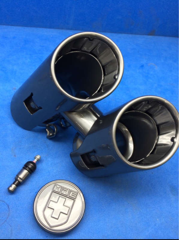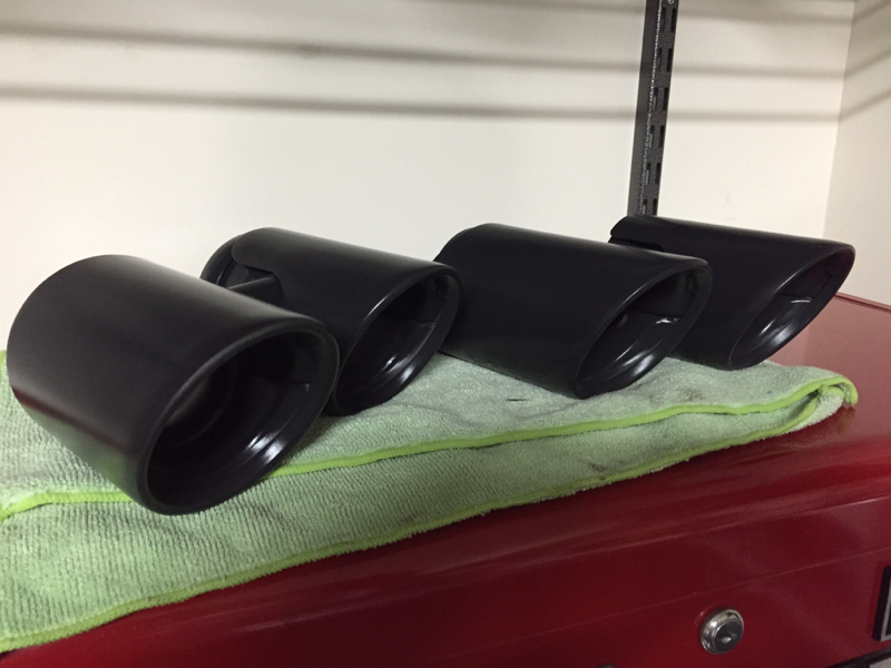 1) Fabspeed gloss black quad tips. Sort of a backup option. Want more of a flat black color to match the new HREs but I love the size of these tips.