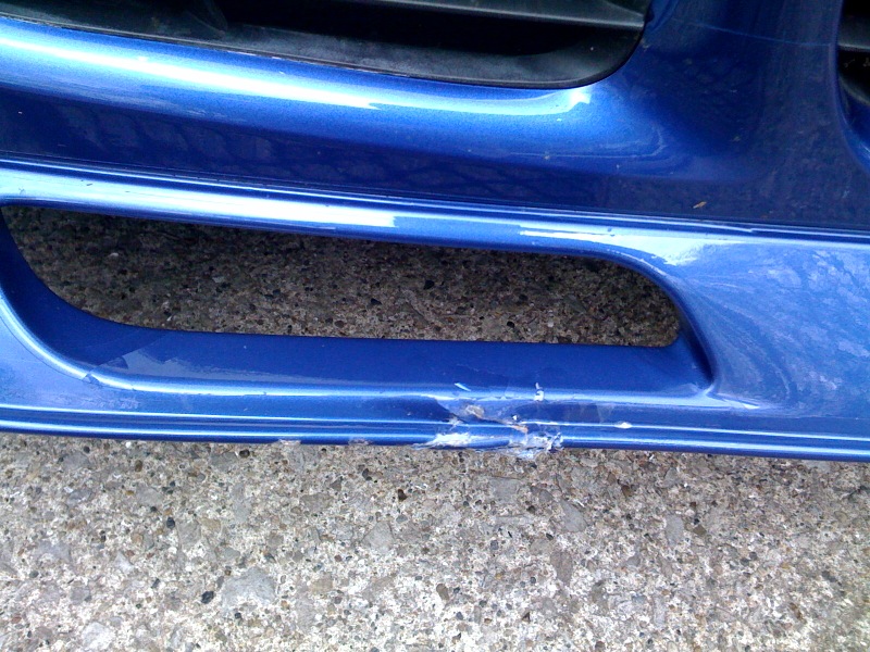 Well I was putting the TT on my trailer this afternoon to take the car down to my indie for the new UMW clutch & misjudged the incline. This is a brand new trailer to me & even though I thought the incline was ok, the front aerokit got %$#% up. I'm sure this has happened to others, but I am just sick about it. It doesn't appear to be cracked other than in the on place & that is more surface.