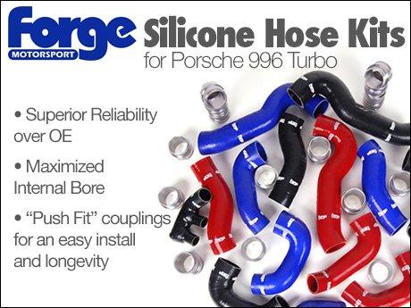 Do your hoses hold you back ? Many hoses begin to deteriorate and crack over time, causing overall performance loss. The experts at Forge Motorsports have created a 60mm set of five reinforced silicone seamless turbo pressure hoses, that allow for the reduction of air resistance, while making them tough enough to deliver pressurized air to the cylinders, giving your 996T more power. The kit doesn't stop at just the hoses, it also includes CNC machined “push fit” couplings to ensure ease of installation and longevity. Available in three colors.