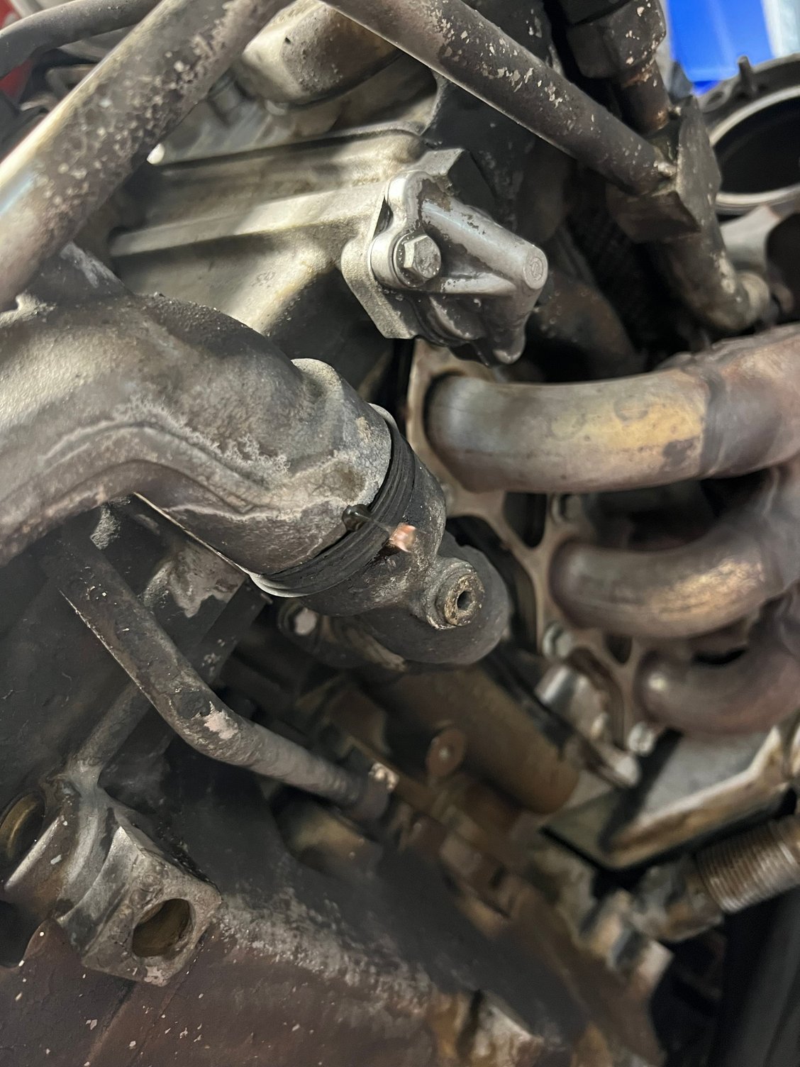 Also, the water pump is definitely bad, and there is definitely a leak from here, not trickling down from anywhere else.