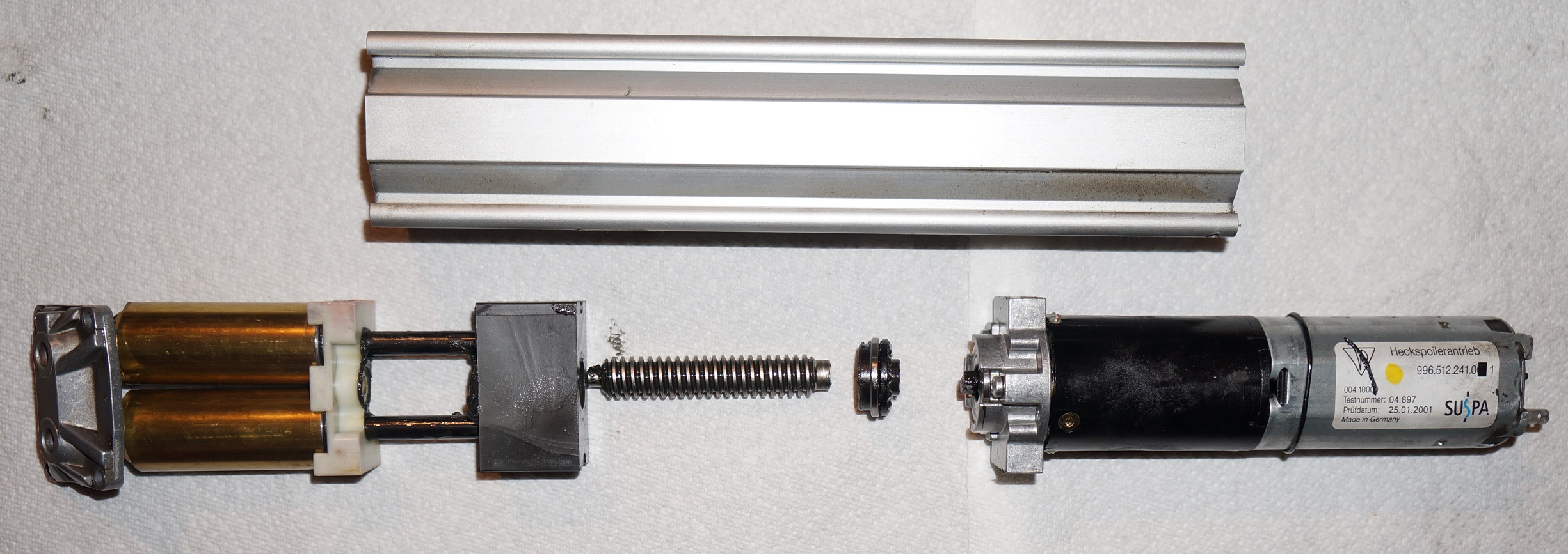 That sounds like a good plan. From the look of your failure there must be quite a bit of force exerted there. The only way that could happen would be for the screw to stop turning while the motor is still pushing. When you disassembled the parts - where was the brown plastic piece? (Top or Bottom) If it was the bottom - your fluid was low or "spoiler up" pressure switch failed, if it was the top - the pressure switch for "spoiler down" must be toast. I would think that if the block was at the bottom, the plastic would have broken before the metal screw.