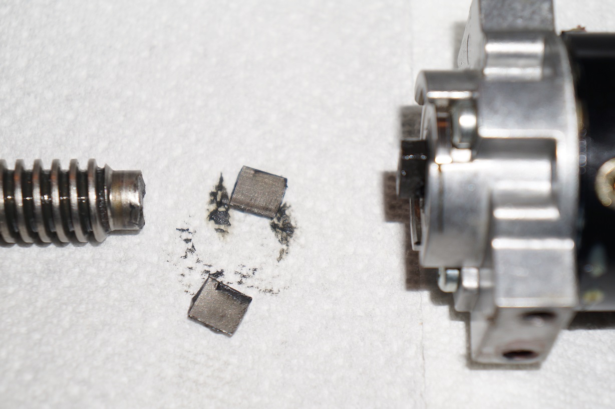 I could not weld the motor to the screw, the heat would have damaged the motor and the black plastic block. I squared the end of the screw. Then I