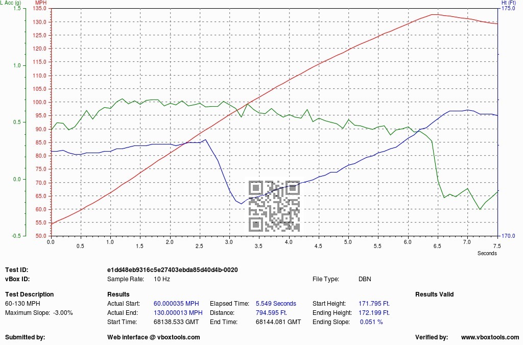 Good Job Fadi, you have the one size bigger compressor wheel then CCR who has the 996 60 to 130 record of 3.71 sec. He has the ski 850 turbos but is also a 4L on a gt2 and has the a very expensive intake.