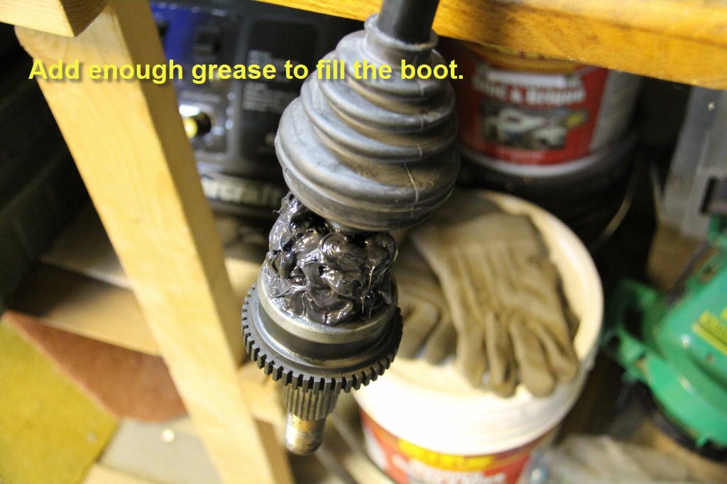 I would like to add, while replacing the cv shafts or boots I read it is also a good time to replace wheel bearings. I replaced the drivers side bearing by purchasing a 12 ton press from Harbor Freight. Instead of fabricating weird shaped pieces to hold carrier in press due to its shape, I simply turned carrier upside down, pressed out old hub and bearing and then placed new bearing (which I had in freezer for a day) on the press first and then set carrier on top of new bearing then used old bearing on the opposite side. I made a piece to cover old bearing and just pressed the carrier down onto new bearing. It worked like a charm! I could probably take pictures of the right side when I do it this weekend.