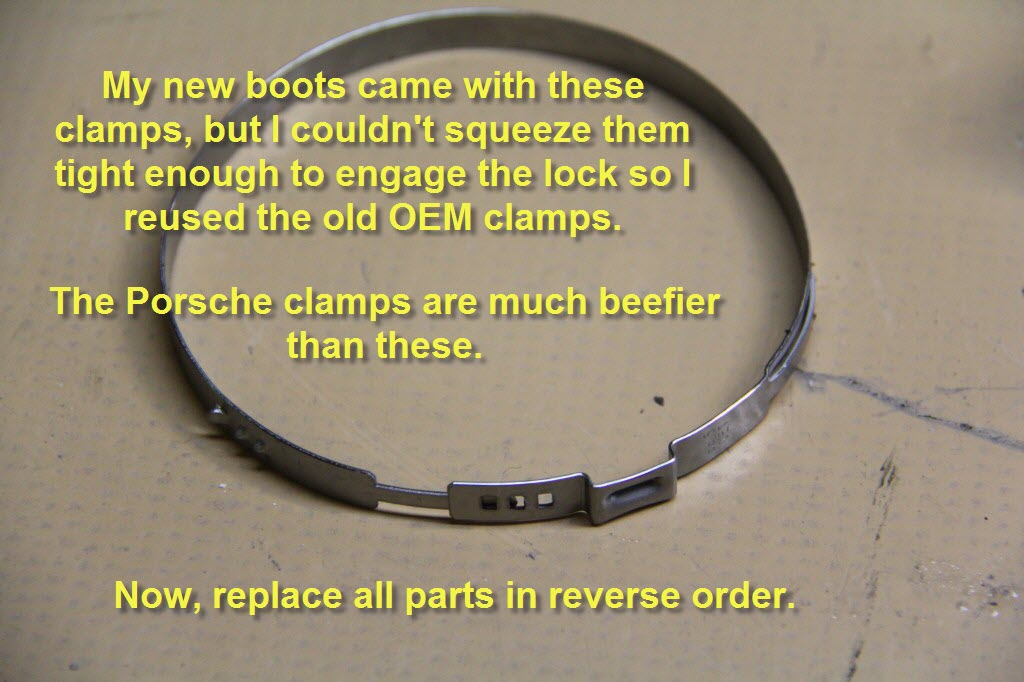 I just did this the drivers side last weekend and sure could have used this write up then! The only problem I had was the clamps. How did you get them off and back on without destroying them? I got them off but couldn't get them on. I changed the wheel bearing while I had it apart also. I ordered that fancy Schwaben air boot expander and busted two boots trying to get over the abs ring