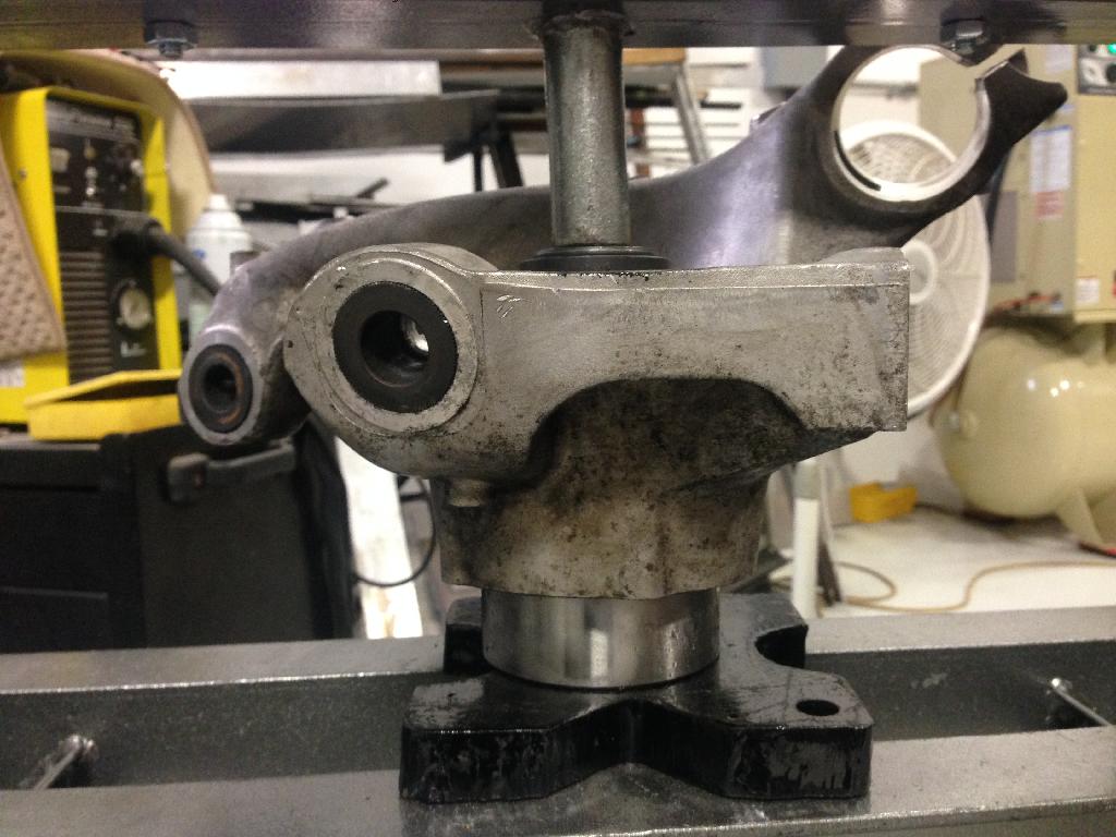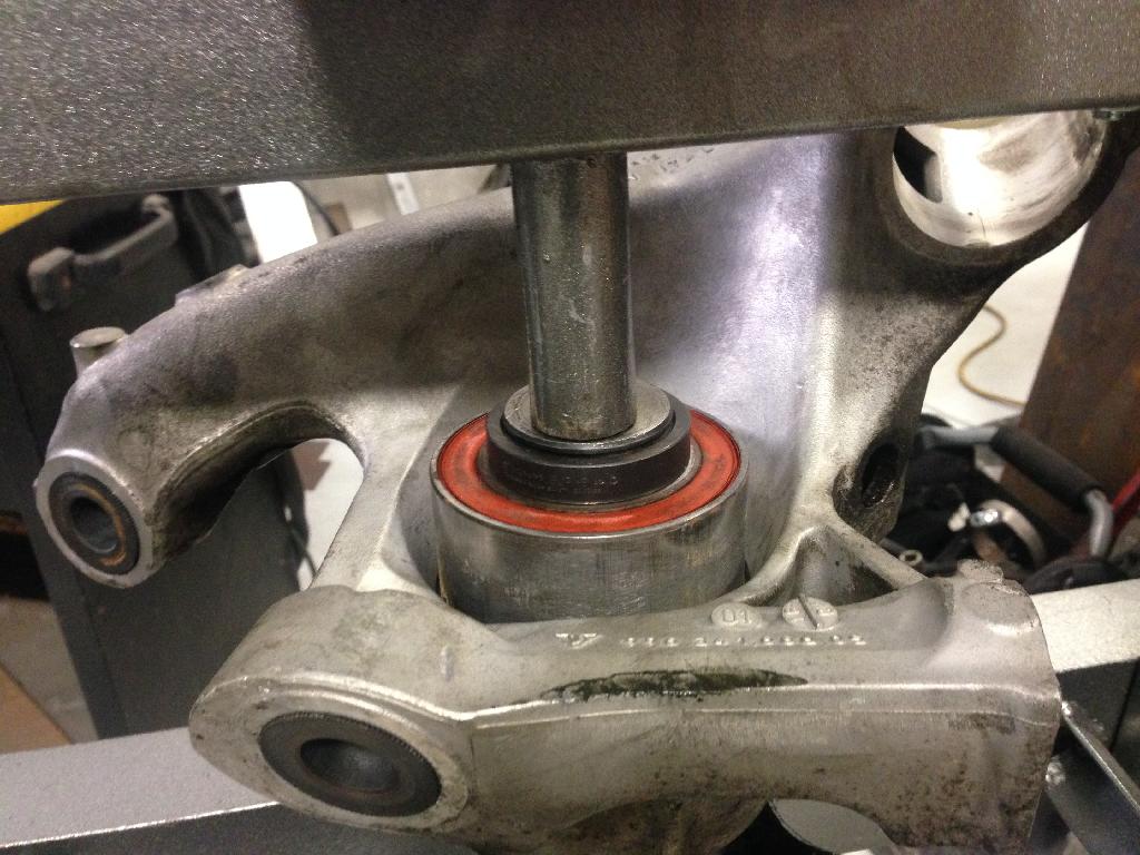 I will, but don't expect no fancy write up...lol It was quite easy and I was hesitant after reading several DIY's showing different pieces people made to hold the carrier due to its odd shape. Took longer to assemble the cheap press than to press out old bearing and press in new one! On the back side of the carrier there is a lip that the bearing seats on from the front side. I started the new bearing in the carrier by lightly tapping it and then set the carrier on the press with new bearing down. I placed the old bearing on the lip from the back side and centered my press on some pieces of steel over the old bearing and pressed the carrier down onto the new bearing.