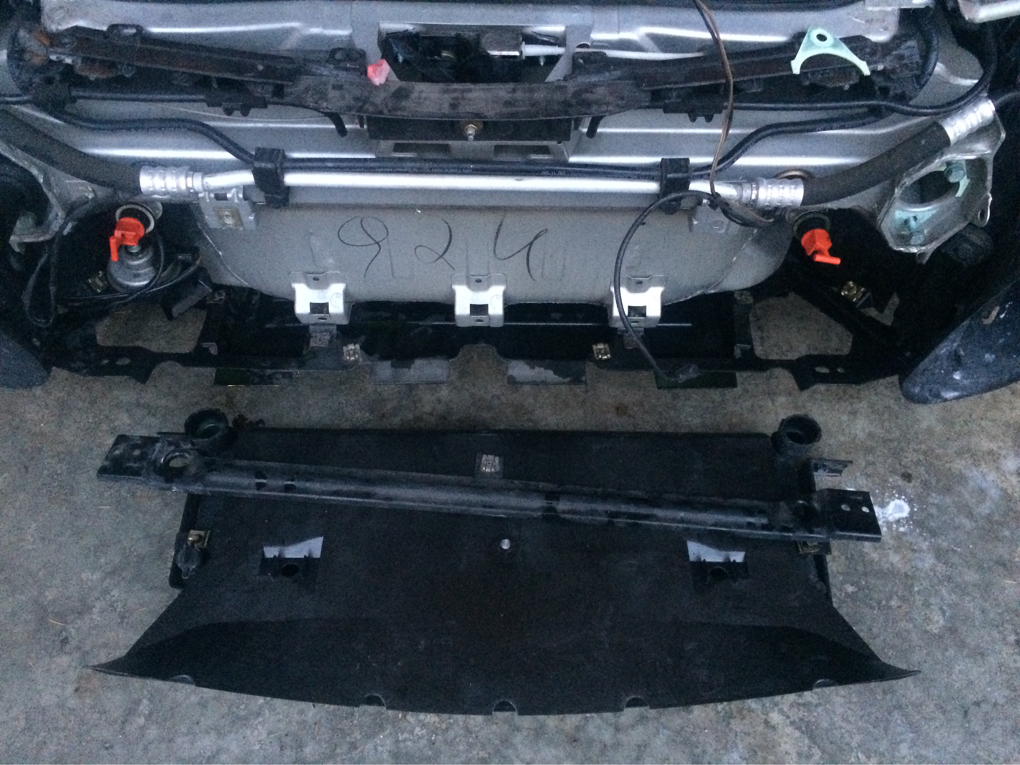 So to accomplish the proper center radiator ducting for the GT2 you have to flip and tilt the radiator. Then you space the bumper support farther forward to allow room for the over the hood radiator duct. So to do this you purchase the ducting, radiator hoses, radiator frames and the brackets to mount. The upper mounts to two tabs with a long bolt and two standoffs using clips to holt the duct which the bolts pass through from moving. That part is easy and not that expensive. The upper and lower radiator frames on the other hand appear to be a little more complex. It appears as though the upper and lower radiator frames are basically the same as the 996tt, but are made to mate with the radiator when flipped. So when searching for these brackets they are difficult to find. I have been quoted as being on back order and coming from Germany. Then their are the two side brackets that mount from the radiator frame to car to support the lower radiator. And they are not cheap. When pricing parts it costs about $2000 just to flip and reduction the center radiator. And that is if you can get all the parts. And of course this is not a cheap car to mod so I accept that I may just have to bite the bullet and wait for said parts.