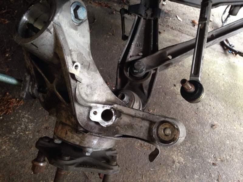 Something is not right Don. You are missing the bottom portion of the upright tie rod joint in our first picture. The steering linkage from the 996TT/GT2 will fit the 996GT2/3/Cup upright without any modifications. As a matter of fact, the steering linkage joint is the same dimension on all the tie rods and this includes stock or Cup. I've run both..