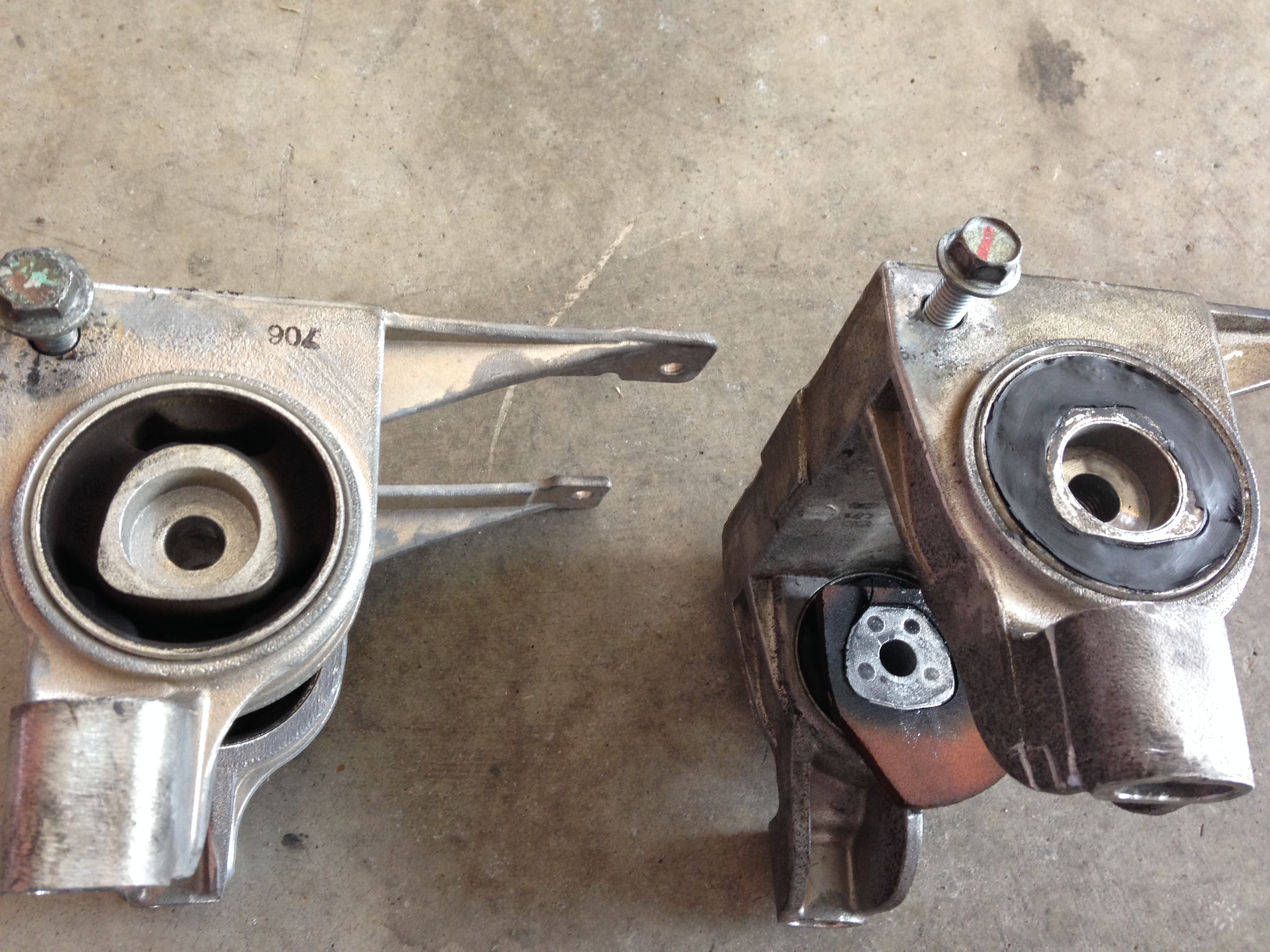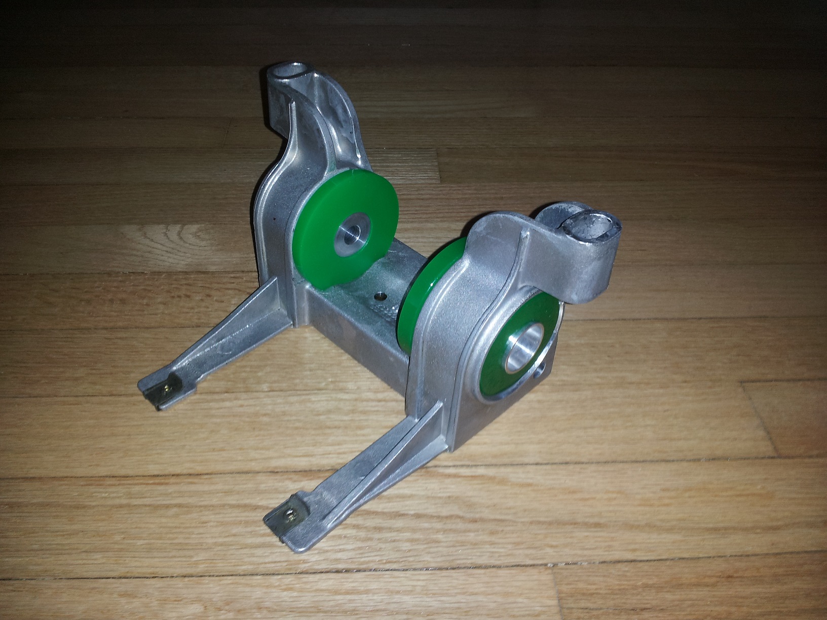 I just installed the Cantrell Motorsports 60 durometer (green) urethane transmission mount inserts. It actually seems quieter / less NVH than my totally shot stock mounts.