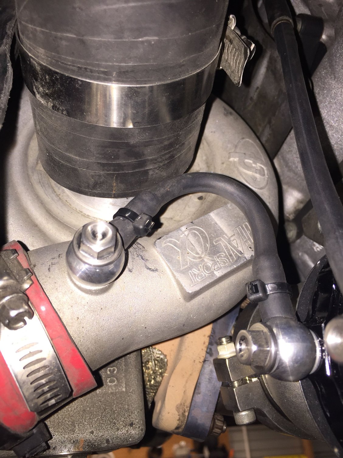 That's convenient, but my Garretts don't have those fittings. I picked up 2 spare large boost hoses that I can play around with installing the fittings I bought. The fittings are installed from the inside, has a backing plate to prevent it from coming out and the nut screws on the outside so no chance of anything falling off inside.