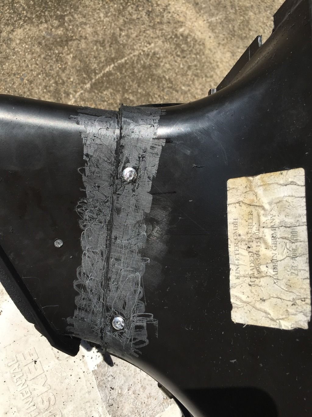 Speaking of fiberglass, read the instructions, wear gloves, use disposable brushes, go a little light on the hardener, SOAK IT. No one will see it afterwards so I didn't stress on pretty and more on function. Rough the surfaces and clean them well.