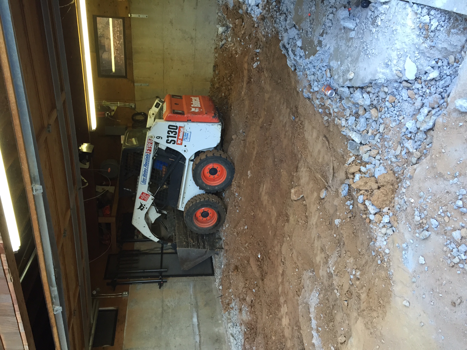 So this past month, I've been working with a crew to demo the old concrete, pull out 10 yards of dirt and pour a new slab. There are 3 grade beams so I can put the lift in different places to lift my fleet of 5 vehicles. Yes, I am driving the bobcat. I am an original redneck Asian.