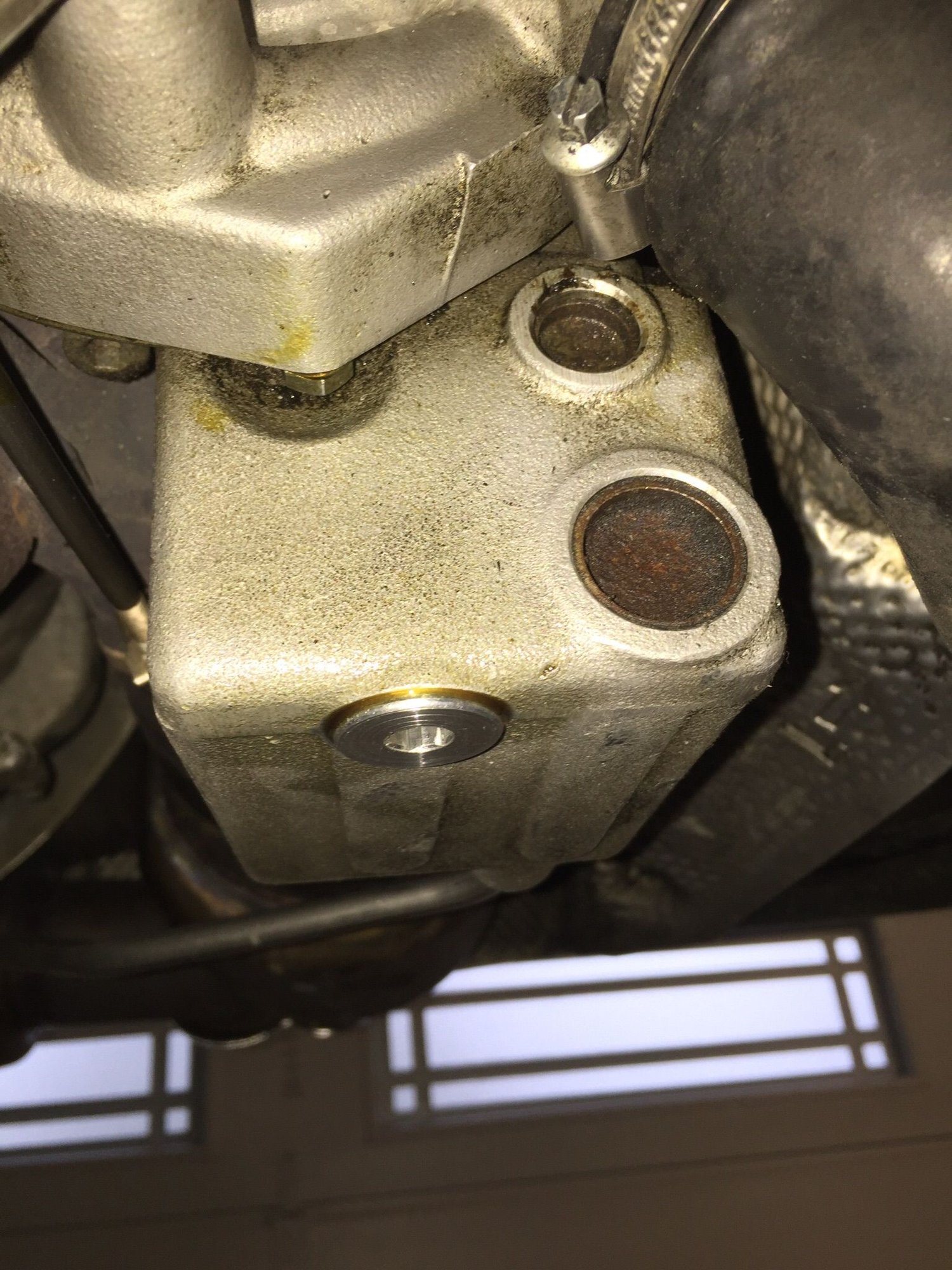 In an earlier post, I mentioned that I spent last Friday/Saturday detailing the underside of my 996TT. I basically went through and used a combination of WD40/mineral spirits to remove all the cosmoline & oil from the back of the car. I noticed today when I was doing an oil change that there is a small bit of oil back on the bottom side of each of the turbo oil tanks. It seems to be weeping down from the large Allen screw area above the oil tank reservoir. I did apply a small amount of torque to the screws & they both were torqued down. Any thoughts on what to do next. Appreciate any thoughts/feedback.