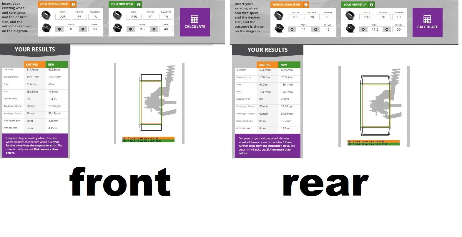 I'm trying to get a custom wheels and I don't want to order the wrong offset and width. tires I think it will be: 235/35/19 front & 305/30/19, is it right?