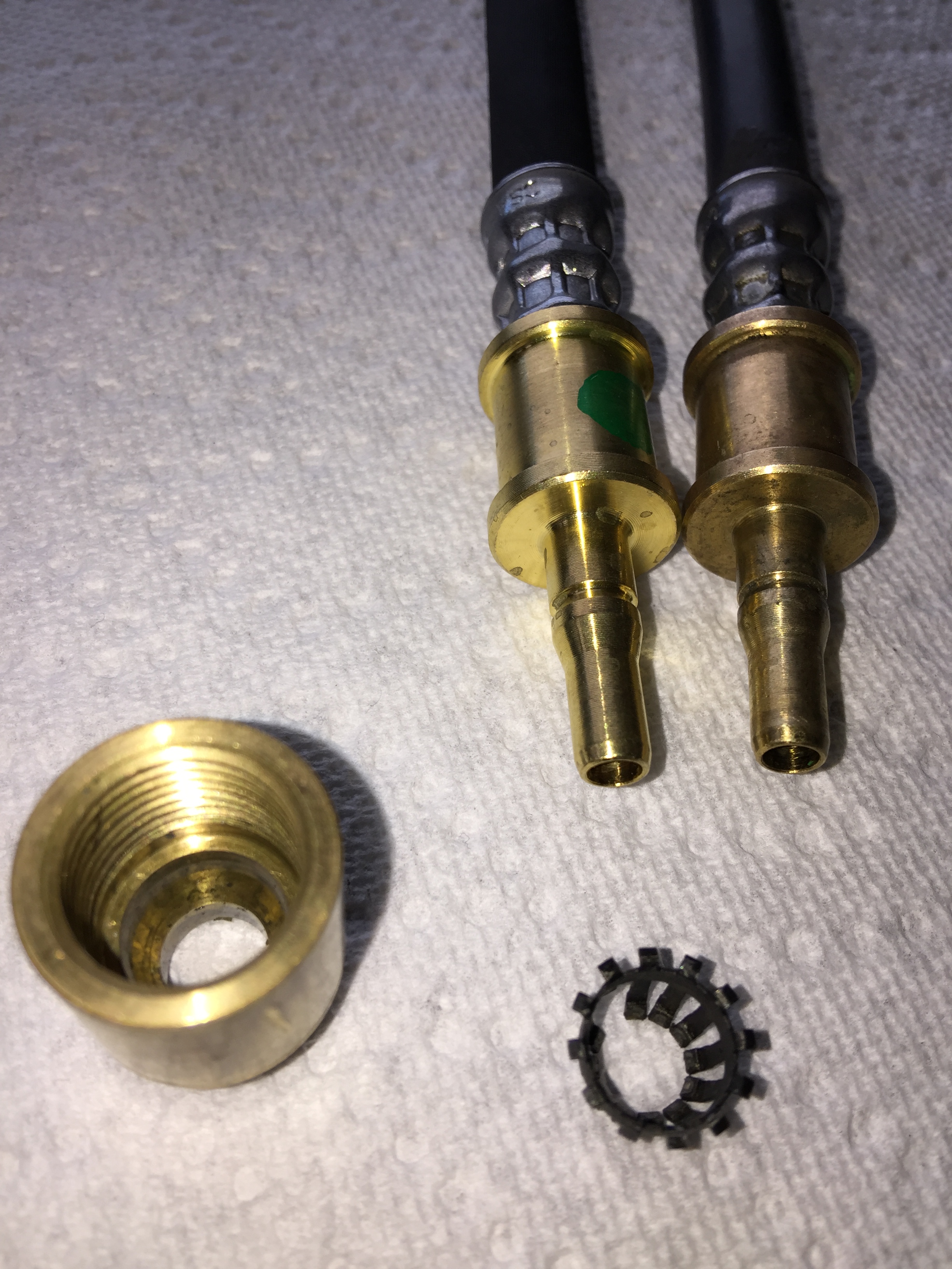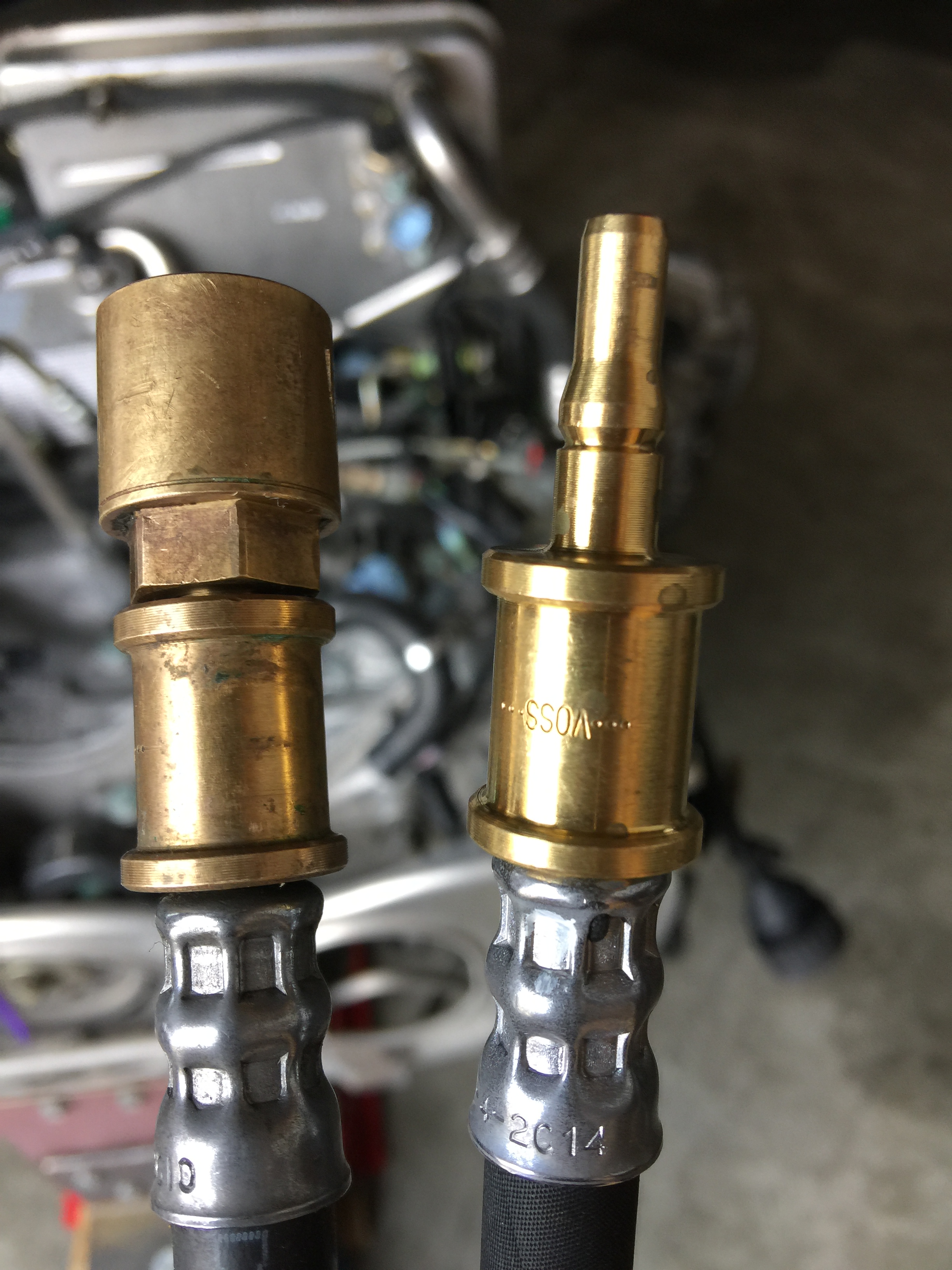 I purchased a new factory hose for my GT2 slave conversion. It does not come with the end to thread it to the plastic line.