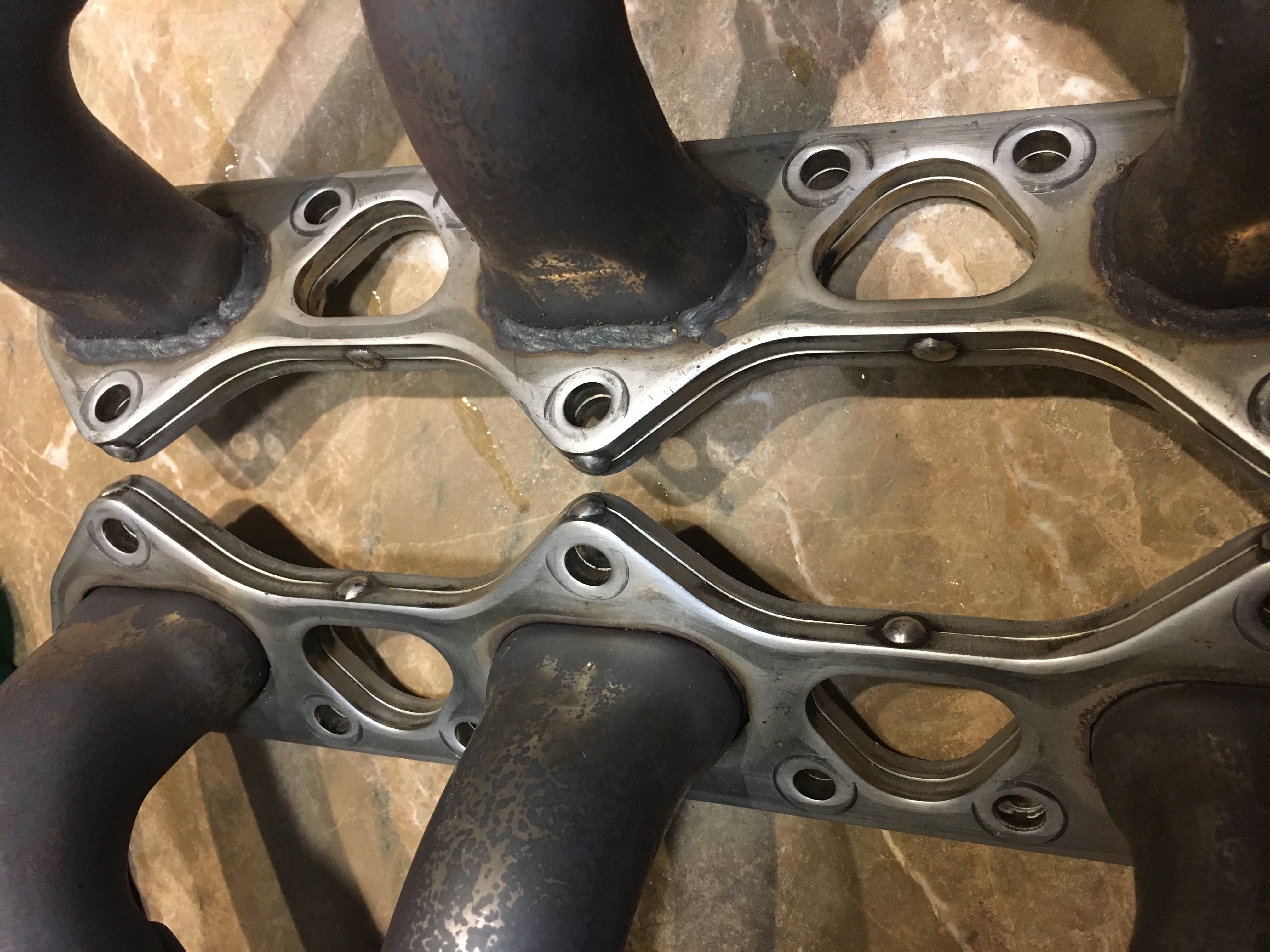 Why is the other exhaust manifold welded on the flanges and the other not?