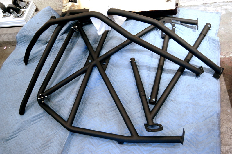 unlike the rollbar, this cage bolts directly to the upper rear suspenion as well as the 4 points weld in both center & front of the car. it helps stiffen the chassis quite a bit. ZLP is right. the head protection will be an issue when using the car on street with no helmet. there're still plenty of room though.