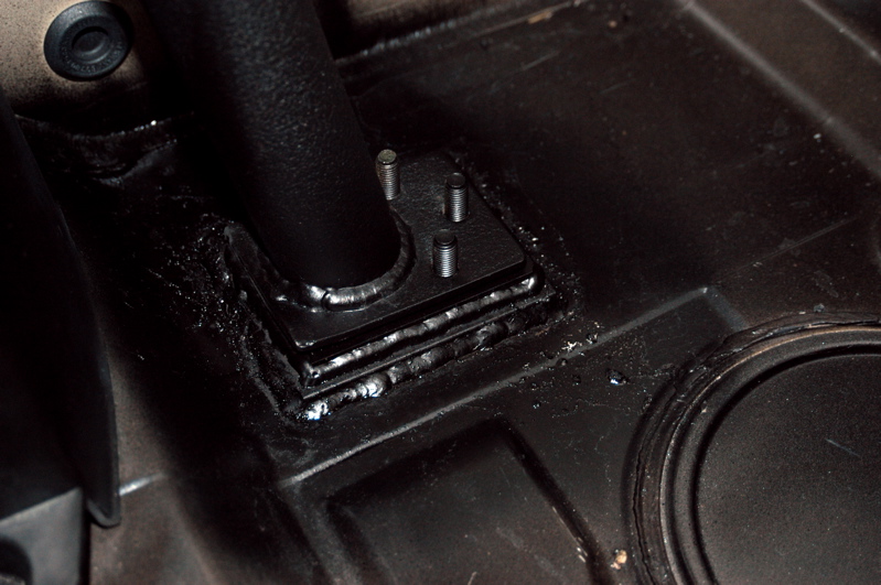 the legs behind front seats are bolted to a metal pcs WELDED to the tub, whick also mean you are cutting through carpet, in addition to welding.