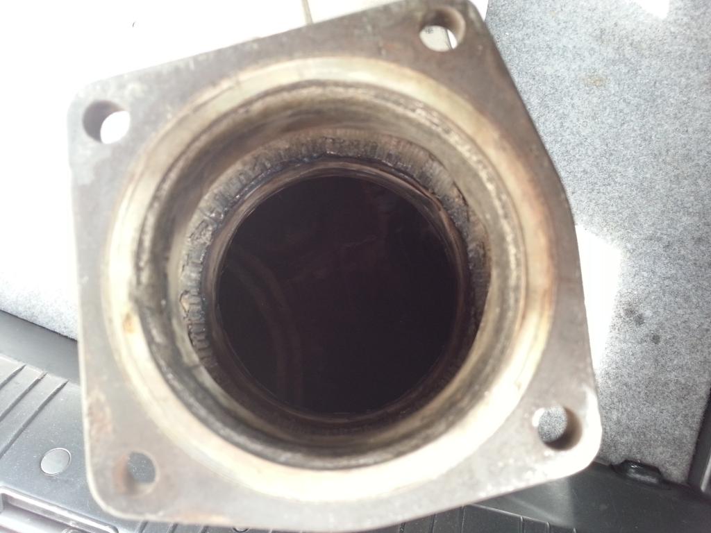Once you drill that hole with the hole saw you will by pass that inner piping and flow more, thus more HP...IF you take one cat out of each side ,it really helps then..