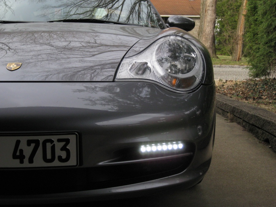 Ok, finally got a chance to take pics.., there are the Philips Daylight 8 installed I mentioned previously. Let me know what you guys think! They are much brighter in person, so much so they hurt your eyes (like staring at the sun)...and cool that they dim at night when I put the headlights on. I also like that everything is black (even under the clear lens) and the brackets, so everything blends in!