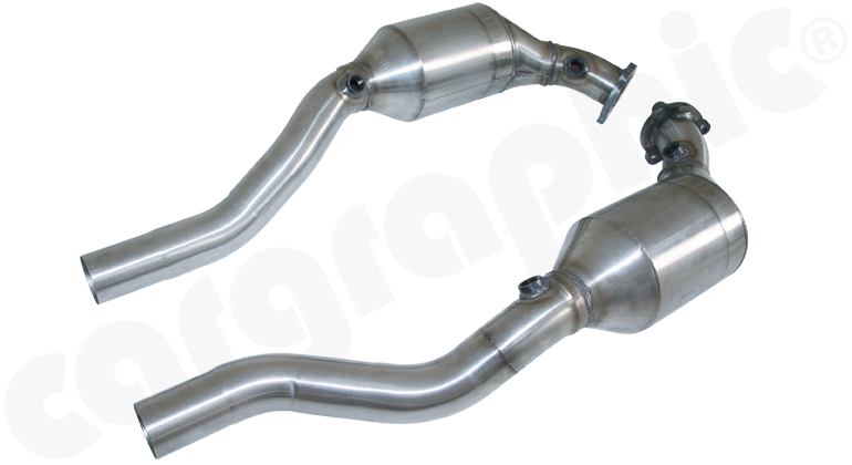 Stainless Steel Sport Catalyser Set Cross over version 2x Trimetal Ø130mm big volume 200 high flow HD Catalysers OBD2 compliant 7KW (10PS) more power and 10Nm additional Torque.