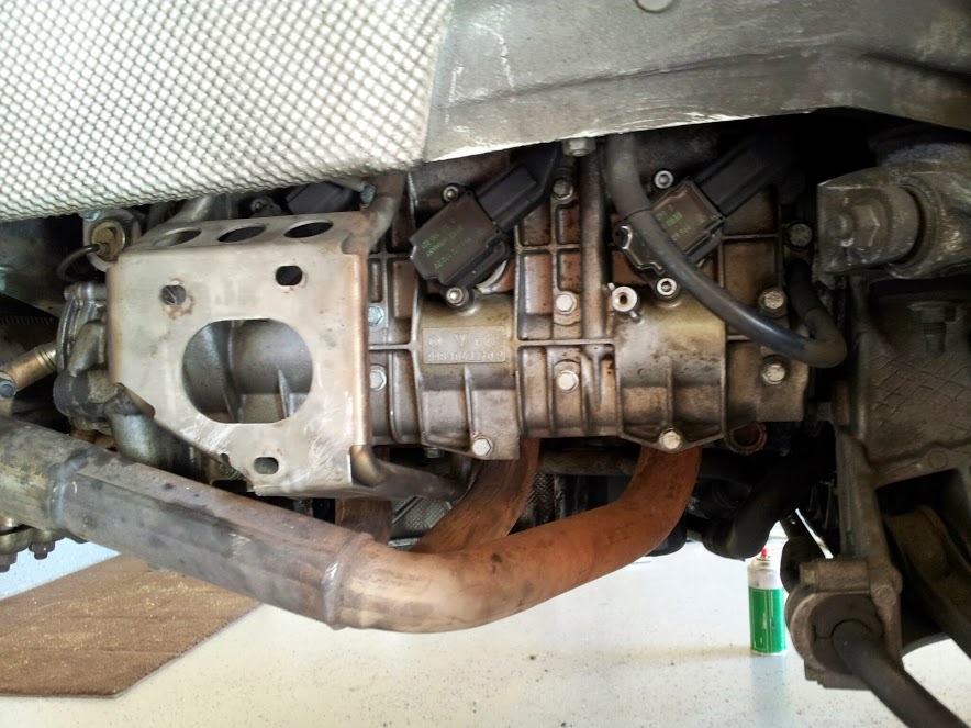 Removing the exhaust bracket itself would make the plug swap cake, but removing the bracket is no easy task, I believe it involves slightly lowering the engine to get to the top bolts. Not worth it.