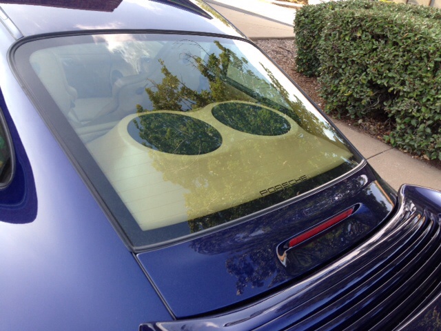 No it does not. The enclosure is about 2.5" above the rear seat but wraps down toward the rear of the car so the back is well below the seat back. You can see perfectally. You can see the box in the rear view mirror but does not impead viewing. I can send more pics if you like. Just give me your email address.